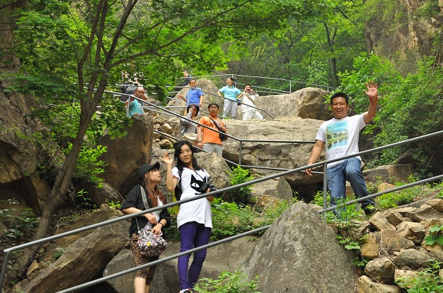 一(yī)大早愛生車隊就經京承高(gāo)速進入懷柔,因為(wèi)不是周末,一(yī)路暢通,一(yī)路美景,大家自(zì)然心情舒暢。活動第一(yī)站幽谷深潭,這裏高(gāo)峽壁立、清泉彙流,雖然還沒到雨季,水草(cǎo)還不是很豐盛,但大自(zì)然的(de)鬼斧神工已經讓員工在這裏感受到了山石潭瀑的(de)神奇和(hé)山林廣闊的(de)自(zì)然之美。
