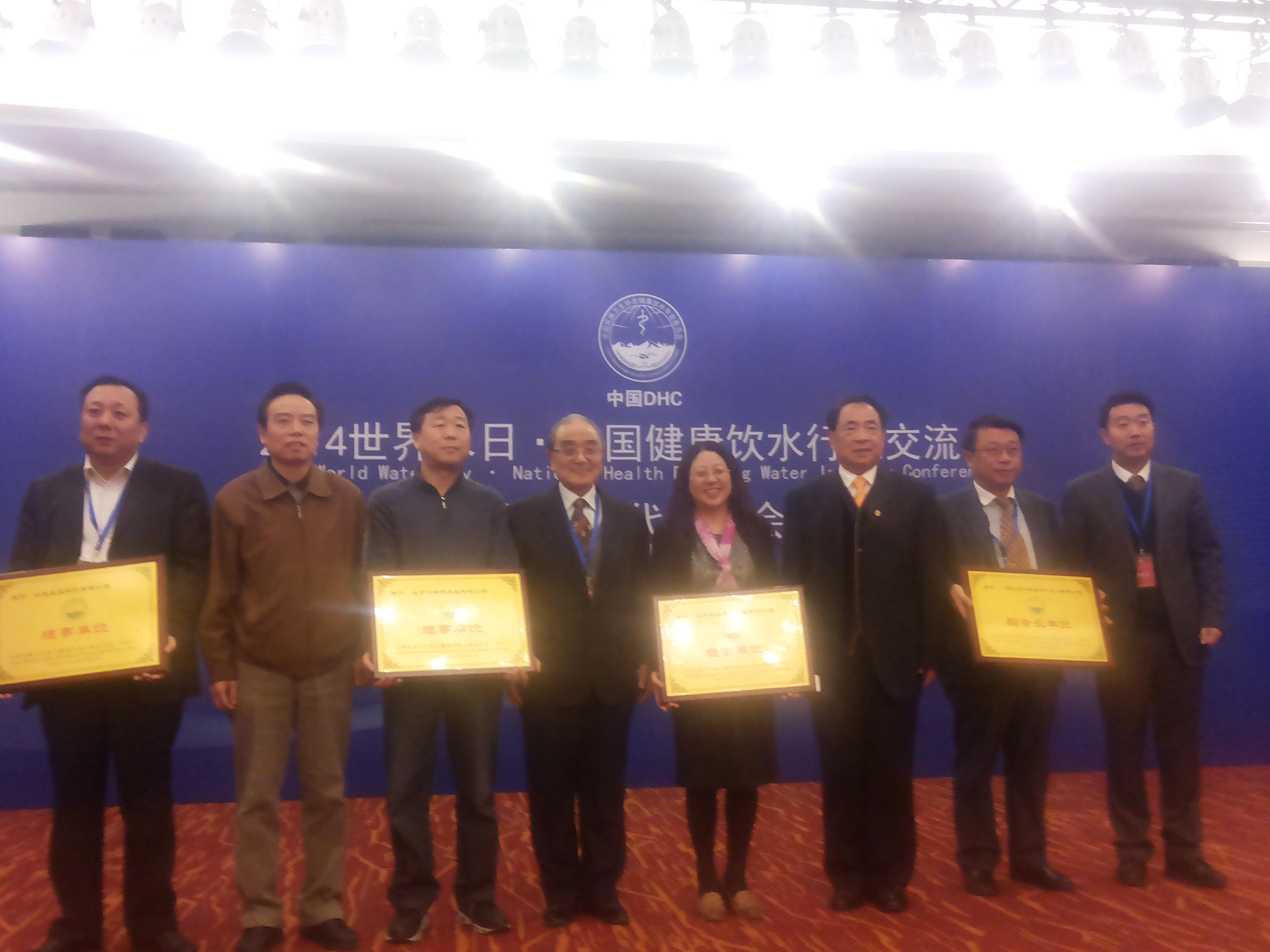 2014年(nián)3月22日,由中國(guó)民族衛生協會健康飲水專業委員會主辦的(de)2014世界水日—全國(guó)健康飲水行(xíng)業交流會暨會員代表大會在北(běi)京世紀金源大飯店順利召開。 會議開始時,首先由中國(guó)民族衛生協會常務副會長(cháng)兼秘書長(cháng),原中紀委、監察部駐衛生醫藥部門紀檢組 副組長(cháng)、監察局局長(cháng)郁德水緻辭并發表講話,并受民族衛生協會會長(cháng),全國(guó)政協常委、原國(guó)家民族事務委員會主任、中央統戰部副部長(cháng)李德洙的(de)委托,帶來了對本次會議順利召開的(de)祝賀。随後,健康飲水專業委員會會長(cháng)金日光,秘書長(cháng)馬錦亞依次發表講話,秘書長(cháng)馬錦亞還對健康飲水專業委員會2013年(nián)度的(de)工作做(zuò)出了工作總結及2014年(nián)度的(de)工作報告。北(běi)京愛生科(kē)技發展有(yǒu)限公司作為(wèi)健康飲水專業委員會的(de)理(lǐ)事會員接受了協會授予的(de)銅牌。張瓊總經理(lǐ)代表愛生公司上台領獎并與協會領導合影留念。