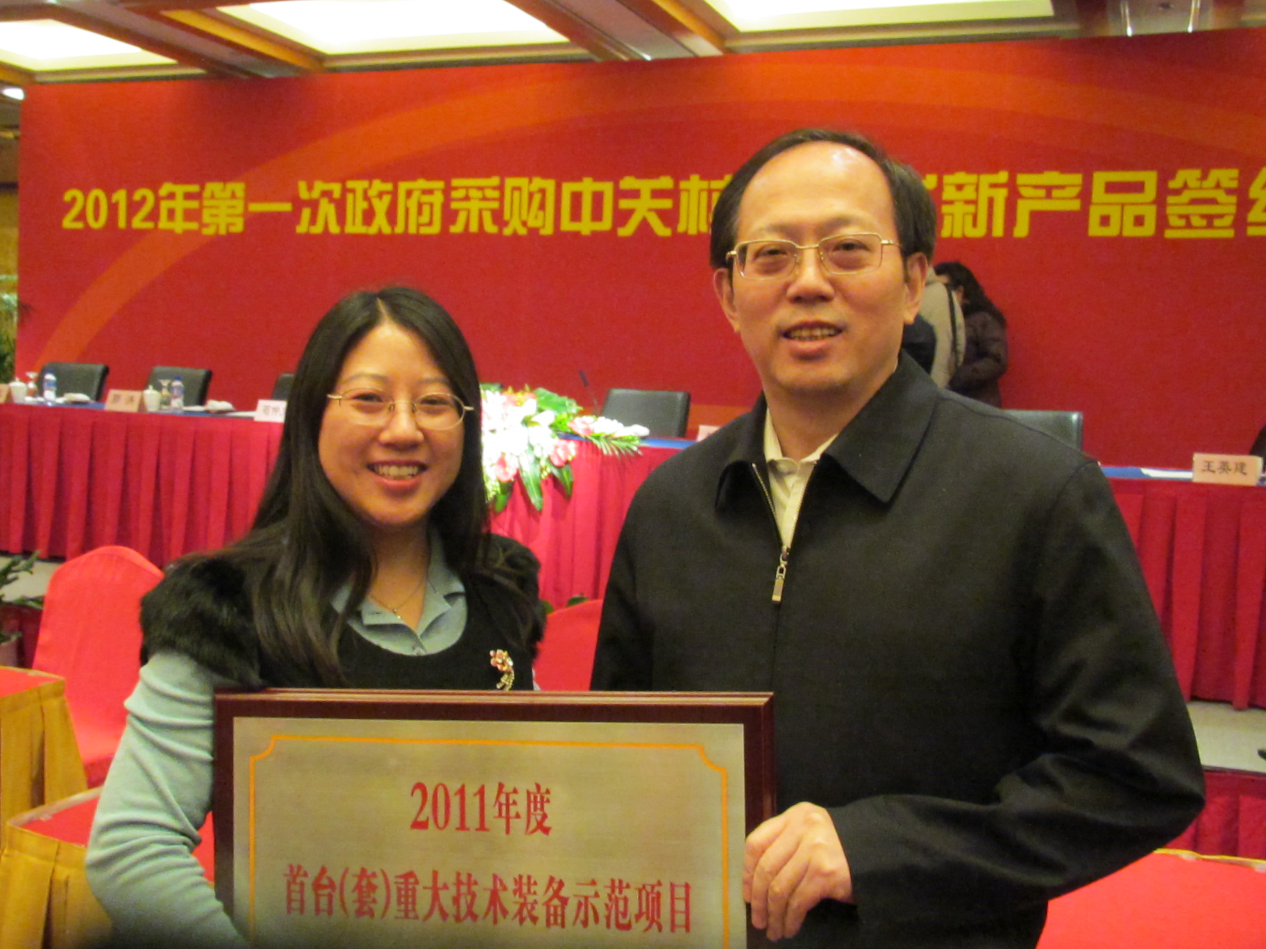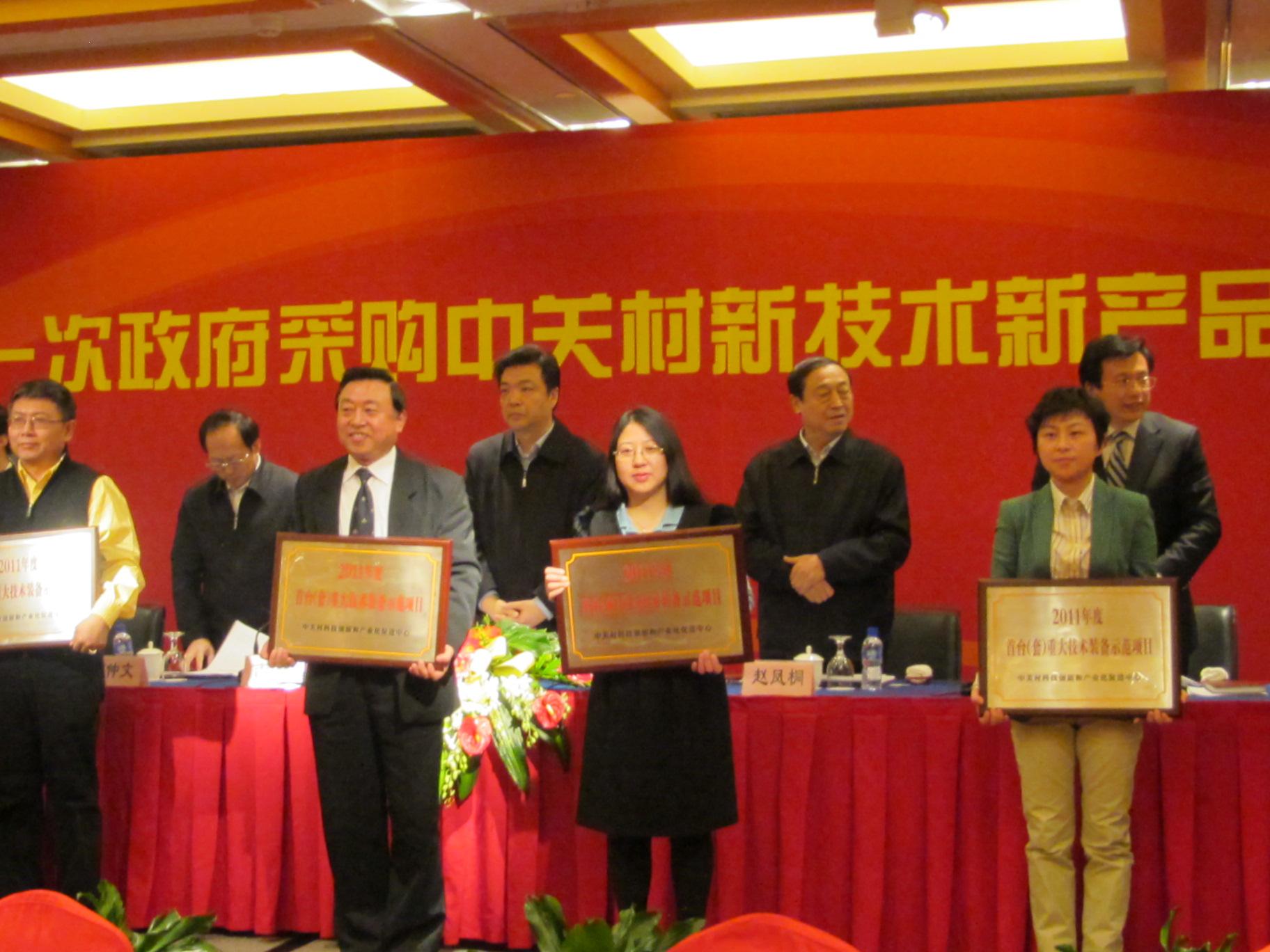 2012年(nián)第一(yī)次政府采購中關村新技術新産品簽約大會于2012年(nián)2月17日在北(běi)京國(guó)際飯店會議中心舉行(xíng)。愛生科(kē)技張瓊總經理(lǐ)接受北(běi)京市(shì)委常委趙鳳桐頒獎。本次會議由市(shì)委副秘書長(cháng)傅華主持,市(shì)委常委、常務副市(shì)長(cháng)吉林參會并講話,市(shì)委常委趙鳳桐,副市(shì)長(cháng)苟仲文,中關村管委會黨組副書記、主任郭洪,市(shì)有(yǒu)關部門、各區縣政府領導,簽約項目雙方代表,市(shì)屬企業代表,園區企業代表和(hé)首台(套)企業代表近200人出席會議。